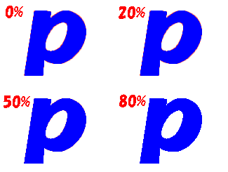アンチエイリアスされた文字 「許容範囲」を変えて塗りつぶし