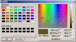 {回答} 色解像度が24ビットカラーになっていますか?その他の解像度では、限定された色(例 8ビットカラー 256色)しか表現できません。ツールバー