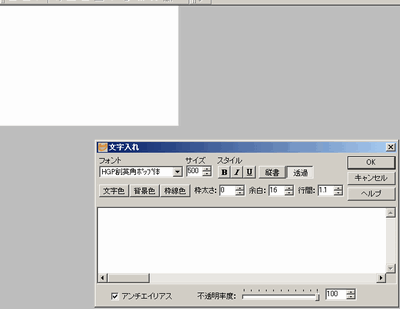 文字入れ時にアンチ・エイリアスにチェックを入れると、境界が目立つ場合があります。その場合には、アンチ・エイリアスをオフにしてください。