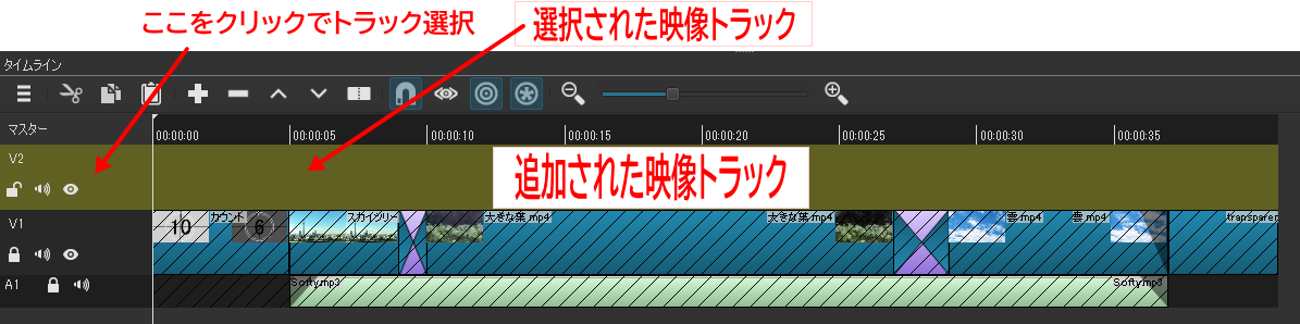 映像トラックV2を選択します。