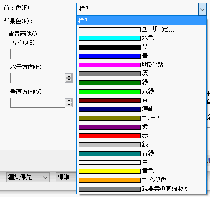 「色と背景」タブ・・・前景色(文字の色)を青に変更(