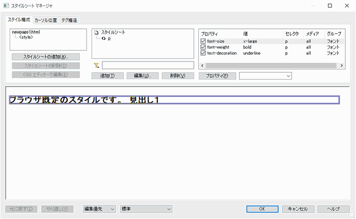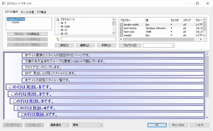 sample_01.htmlのスタイルシートマネジャダイアログを見てください。