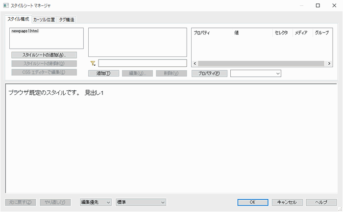 なお、HPBのスタイルシートマネジャでは、埋込みと外部スタイルシートは、全く同様な方法で編集できます。