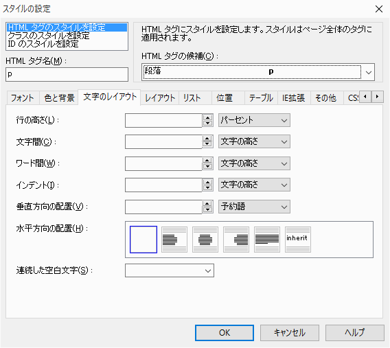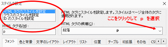 p{ } 標準段落 pタグ へのスタイルの指定を示します。