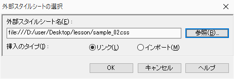 hrefで外部スタイルシートを指定しています。この場合は、ページがあるフォルダ内のsample_02.cssです。