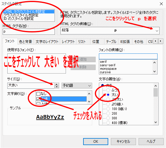 例 <p style="font-weight : bold;">ソース内のスタイル</p>