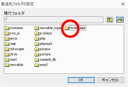 フォルダ指定です。参照で、プロバイダの指示に従ってください。
