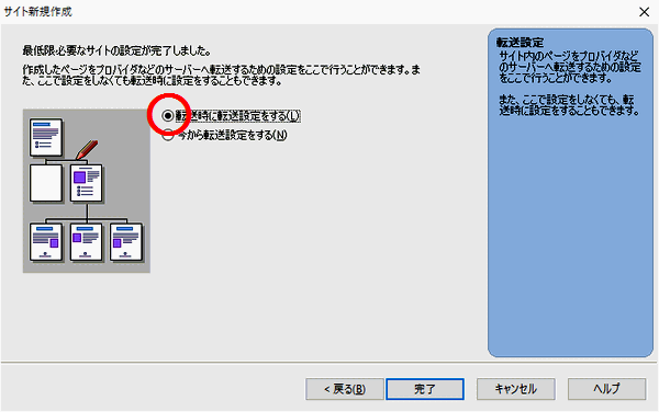「転送時に転送設定をする」にチェックを入れて[完了]