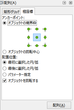 整列・配置には、整列/配置のダイアログと配置行列を使う方法があります。