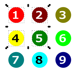 オブジェクトを入れ替えます。(選択順、重なり順、時計回りに)