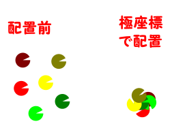 円/弧を極座標で配置します。