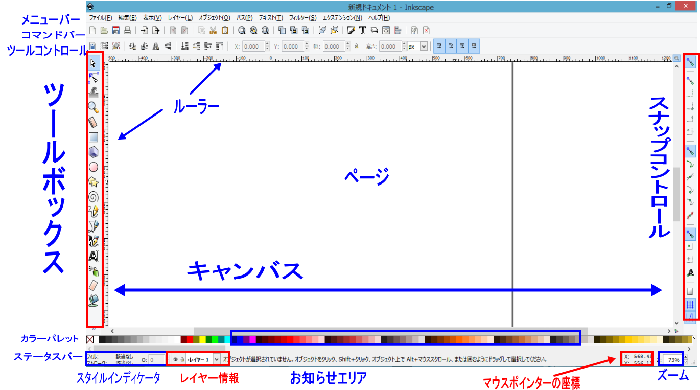 Inkscapeを立ち上げると、最初にこのウィンドウが表示されます。