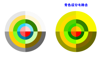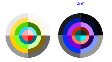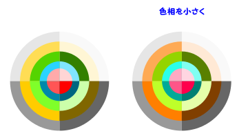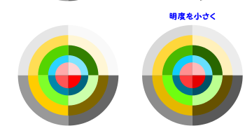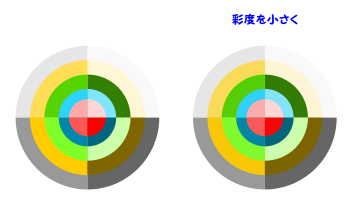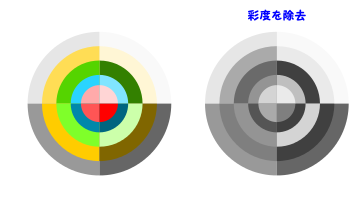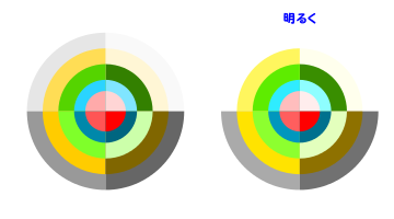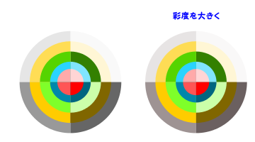 彩度・・・鮮やかさ、色相・・・色合い、明度・・・明るさ