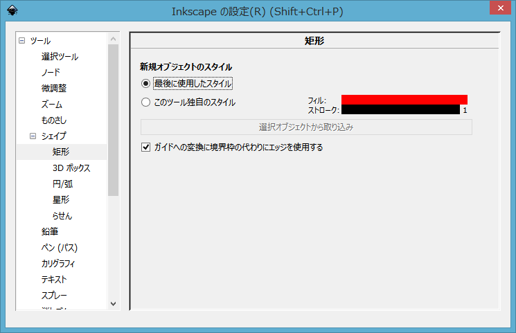 カレントスタイルをクリックするとInkscapeの設定ダイアログが表示されます。