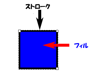 フィルは、オブジェクト内部の色(青)で、ストロークは境界の線(黒)です。
