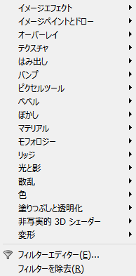 イメージエフェクトから変形までが準備されたフィルタです。