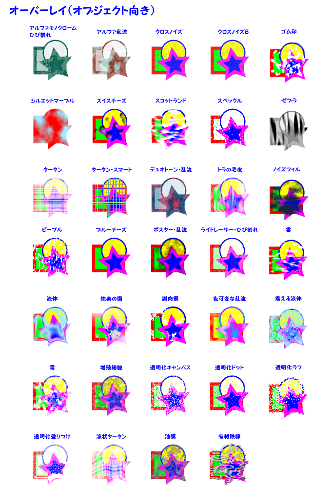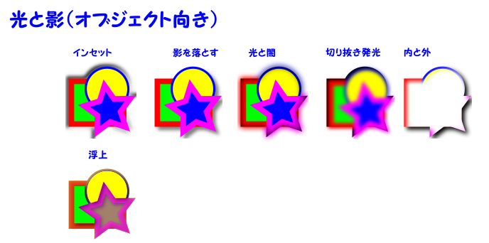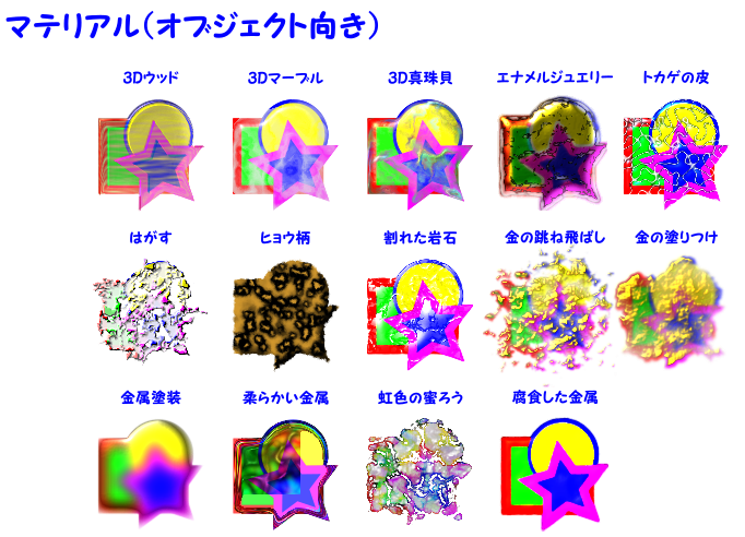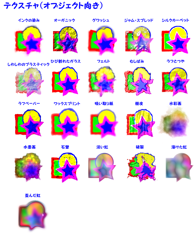沢山の種類があります。通常のオブジェクト向きのものとビットマップ画像向きのものがあります。