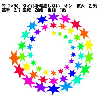 スペースの値が、累積されます。例えば、10%に指定されていると、最初は10%ですが、次には20%、30%と位置がずれていきます。これは、タイルを拡大縮小する時、タイルの間を一定にしたい場合に有効です。