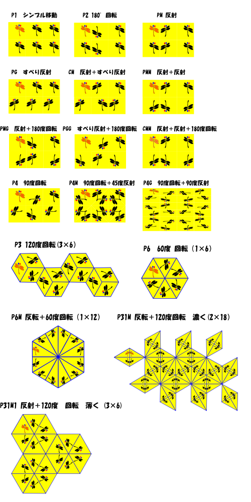 17種類のタイルの詳しい解説は、Wallpaper group (英文) をご覧ください。