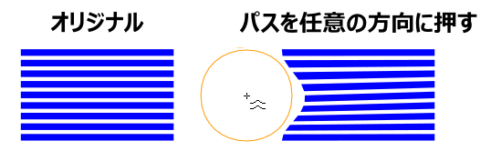 ドラッグする方向に、押されるように変化します。(押し曲げ)
