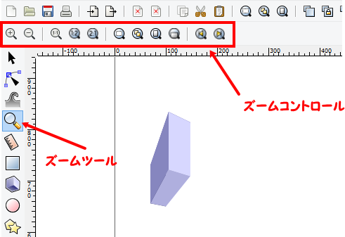 オブジェクトのズームやパンは、描画中に頻繁に利用されます。Inkscapeには、いろいろな方法が準備されています。使いやすい方法を利用してください。