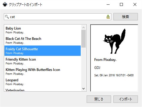 InkscapeのOpen Clip Art Libraryを検索してインポートできます。