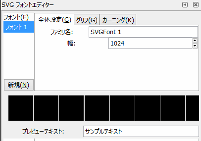 ファミリー名・・・フォントの名称を設定(既定 SVGFont 1) 英数字のわかりやすい名称を入力