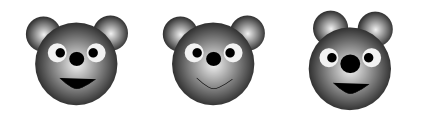 目や口・耳の位置や大きさ・塗りを変えると異なった印象の顔ができます。