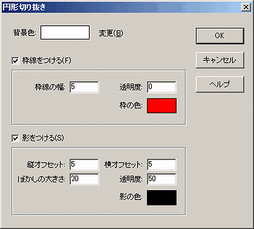 メニューバー「イメージ」 → 「円形切り抜き」 円形切り抜きダイアログが表示されます。