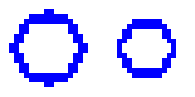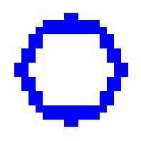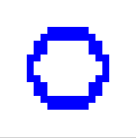 (塗りつぶし) → 青に塗りつぶす → 対角線上に青の2×2のピクセルを配置(ドラッグ → 「位置確定」を繰り返す) 塗りつぶし方法