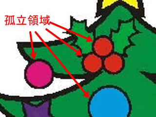 ①孤立している領域を塗りつぶすと、その領域のみになります。(別な場所に同じ色があっても塗りつぶされません。改めて別の場所をクリックしてください。