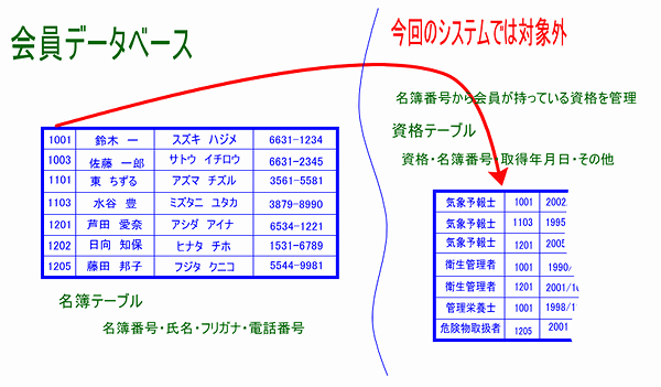 - 開発するWEBアプリケーションは、ある団体の会員管理システムです。会員管理システムでは、会員名簿と会員が持っている資格を管理しています。
