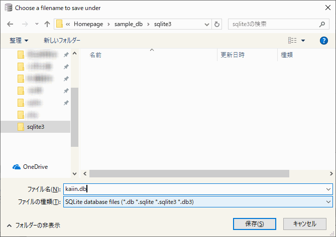 ホルダーsqlite3にファイル名kaiin.dbで保存 →