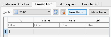 DB Browser for SQLiteを閉じて、再度、開きます。